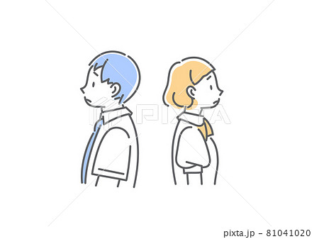 背中合わせで立つ男子生徒と女子生徒 白バック の写真素材 イラスト素材 アマナイメージズ